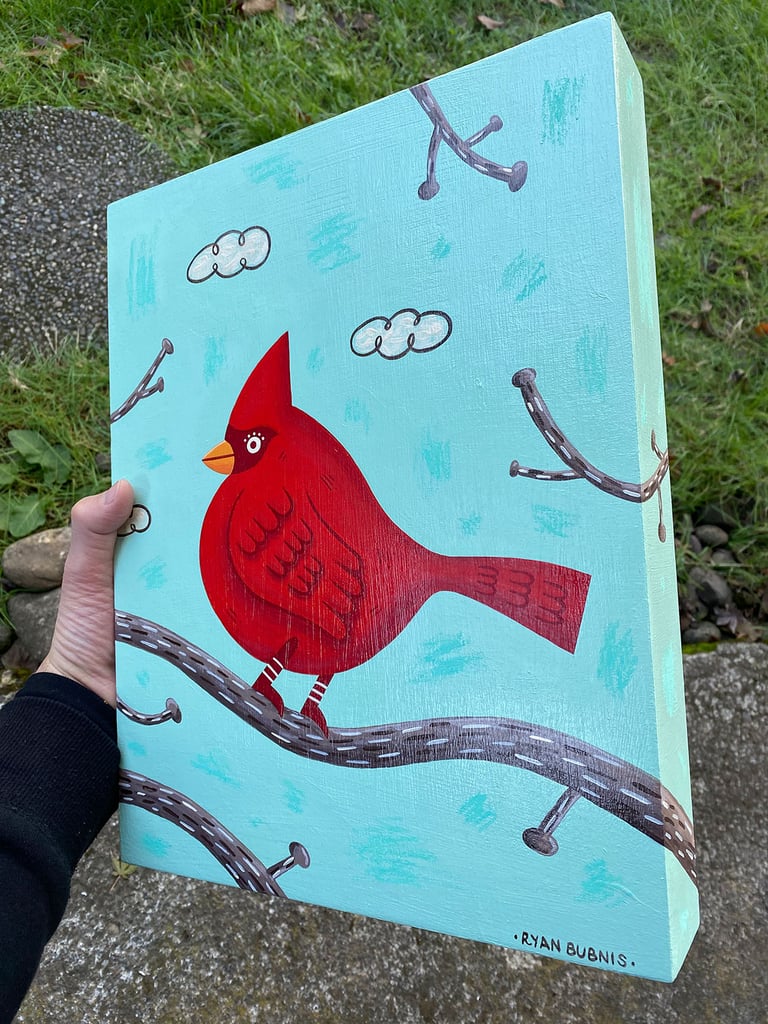 This is an original, one-of-a-kind, hand-painted, signed painting by Portland artist, Ryan Bubnis.