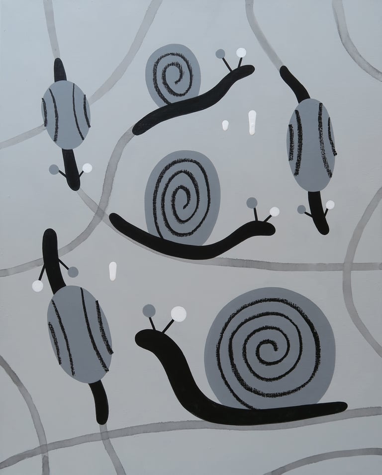 I have always been fascinated by snails. They carry their home with them wherever they go and leave a slimy trail behind them marking where they have been. This piece is about trusting your gut and going your own way.